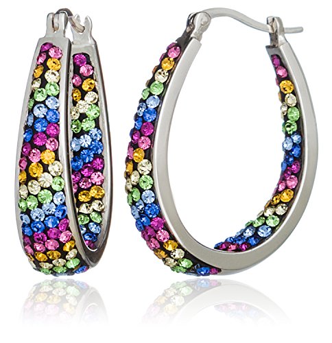 These Hoop Earrings have been especially designed by Carly Creations. Using the finest Preciosa Crystals these earrings are all handset in a rainbow design to enhance the colors of the crystals. These earring can match almost any outfit and can be worn day to night! Please note - because these are hand set each one is slightly different but the overall effect is the same.Feature