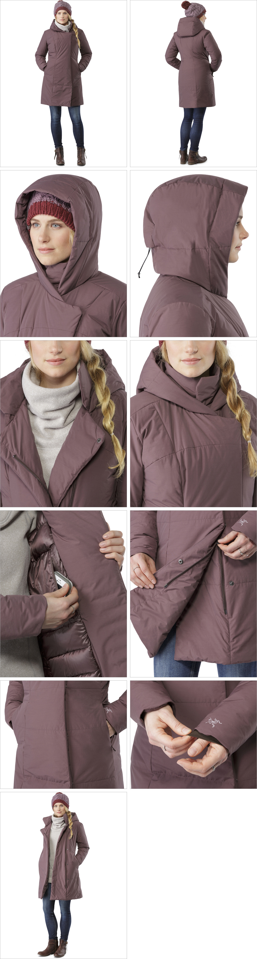 POSITIONING 천연보온재인 다운과 합성보온재인 Coreloft™가 전략적으로 배치되어 최상의 보온력과 쾌적함을 제공해주며 DWR발수처리까지 되어 있어 가벼운 눈 비에도 자유로울 수 있는 긴 기장의 코트