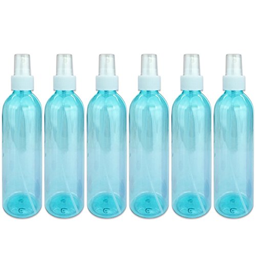 Beauticom 6 Piece 8 Oz Teal Transparent Plastic Spray Bottle with Fine Mist Sprayer and Cap for Travel, Fragrances, Oils, Alcohol and Other Liquids