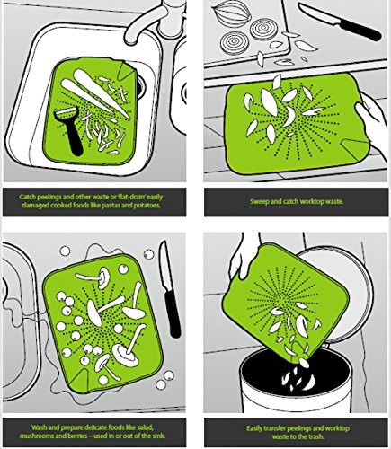 - Place in the sink to catch peelings, or wash delicate food