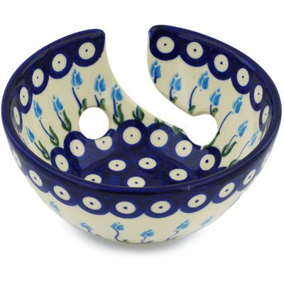 Polish Pottery Yarn Bowl 6-inch Floral Peacock