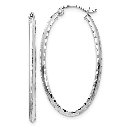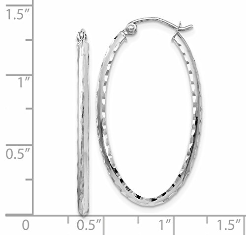 Roy Rose Jewelry Leslies 14K White Gold Diamond-cut Oval Hoop Earrings ~ 20mm width