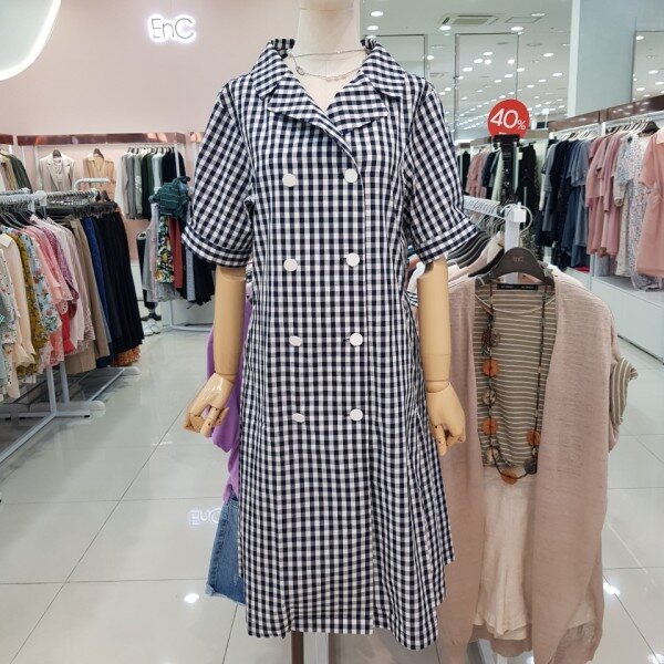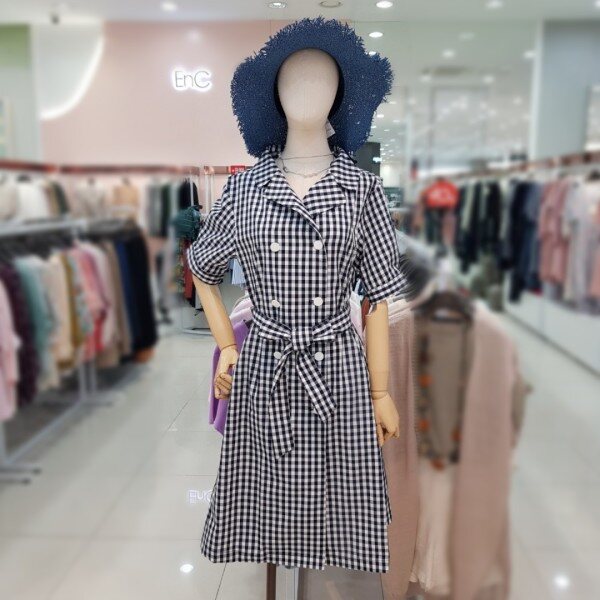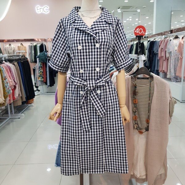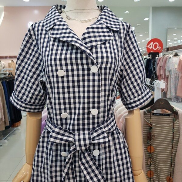 네이비와 화이트의 깅엄체크로 세련되면서도 깔끔하게 입으실수 있게나온 원피스 오픈형으로 트렌치느낌까지 입으실수 있는 아이템