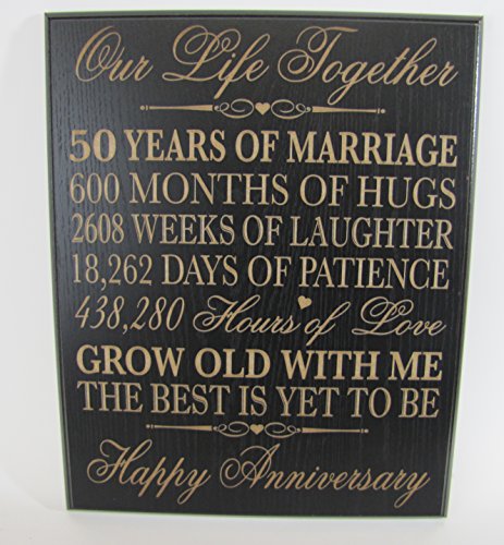 Honor the happy couple with a personalized 50th wedding anniversary cherry wall plaque. A treasured and lasting personal keepsake for wedding or anniversary. 50th Anniversary plaque can be displayed on tabletop or hung on wall