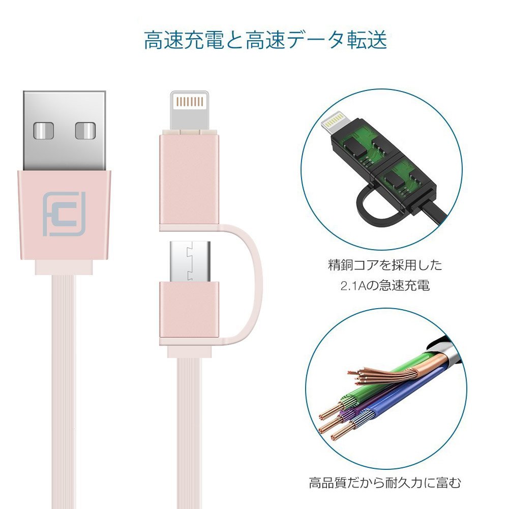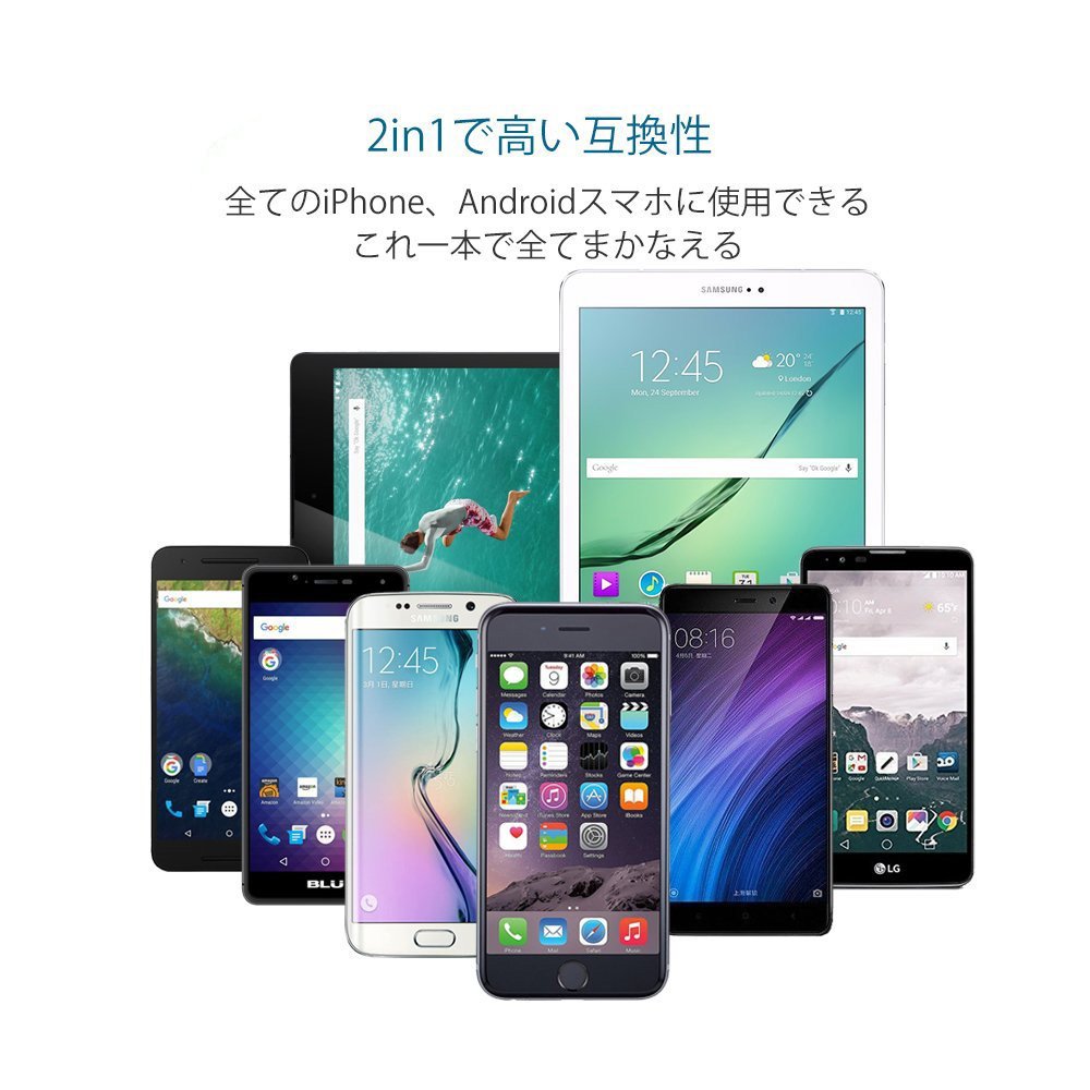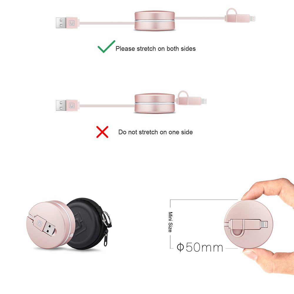 1. It is 2 in 1 USB charging cable which can use iPhone and Android just by changing plug-in plug.
