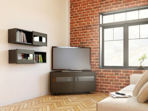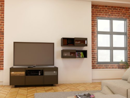 - Feature : Wall shelving unit divided in 2 sections with sliding door / Easy installation / Part of Nuance Collection from Nexera / Espresso textured lacquer and Ebony finish