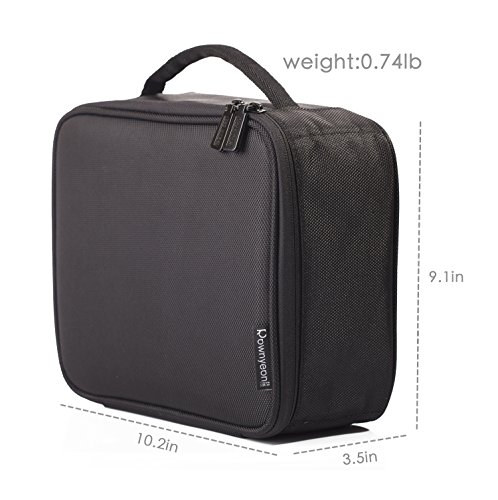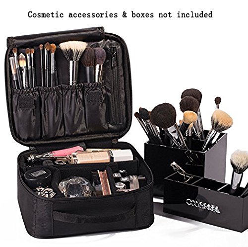 DIMENSION: 9.8" x 9.1" x 3.5". It will be very handy while traveling. Easily carry cosmetics makeup tools like lipstick, eye shadow, or men's shaving kit, fit 7in makeup brush and 3in lipstick