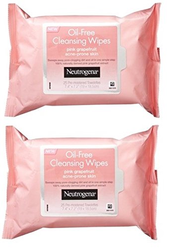 Neutrogena Cleansing Wipes, Oil-free, Acne-prone Skin, Pink Grapefruit, 25 Ct (Pack 2)