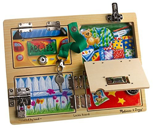 -. Feature : ONE FREE Melissa & Doug Scratch Art Mini-Pad is bundled with this item. The style of the mini-pad you receive is randomly picked. The Scratch Art Mini-Pad is considered a FREE bundled item. If you return this item, please return it as well. / Skills activity featuring doors to open, close, and explore / Each door fastens with a different lock or latch / Highlights familiar places and intriguing scenes; Sturdy wooden board with metal hardware and hinges / Builds fine motor skills, hand-eye coordination, and imaginative play. For age 3+.