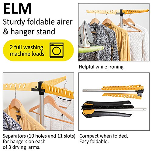 ArtMoon Elm Sturdy Foldable Clothes Airer & Hanger Stand Three Arms Indoor/Outdoor 60X57X130cm