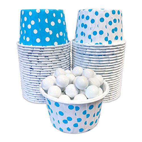 Candy Nut Mini Baking Paper Treat Cups - Light Blue and White Dot - 2 Patterns - 2 x 1.5 Inches - 48 Pack