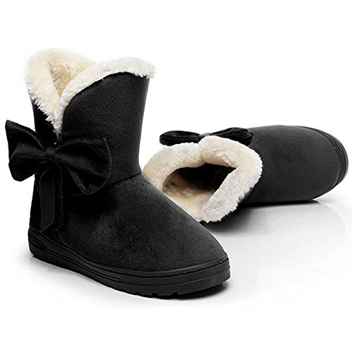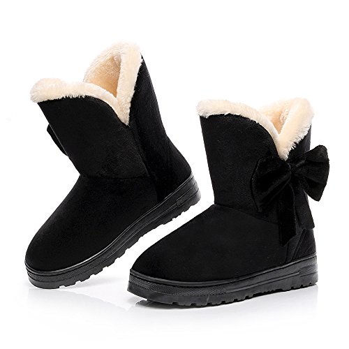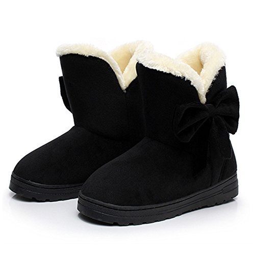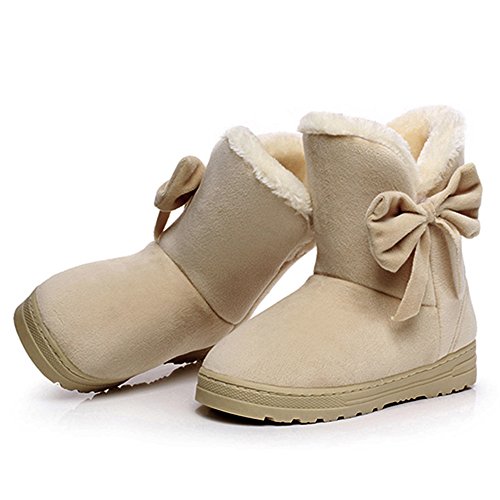 Kangwoo Women Winter Snow Boots Casual Warm Short Plush Ankle Boots With Bowknot Design For Student Winter Shoes