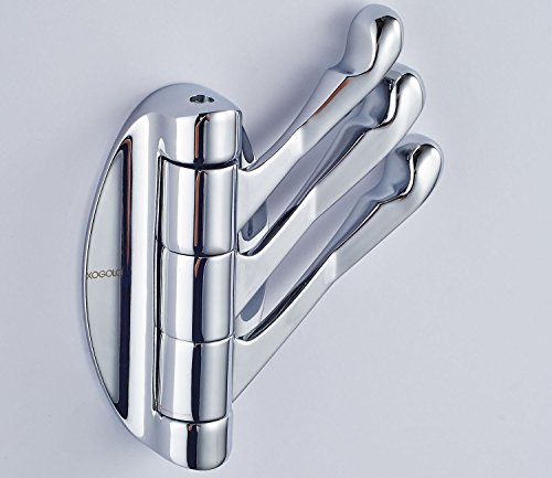 Xogolo SOLID METAL Swivel Hook Heavy Duty Folding Swing Arm Triple Coat Hook with Multi Three Foldable Arms Towel/Clothes Hanger for Bathroom Kitchen Garage Wall Mount Polished Chrome