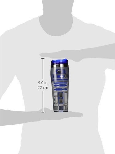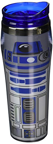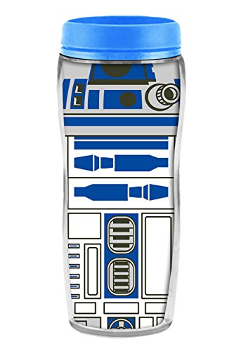Studio : Star Wars Publisher : Star Wars Binding : Kitchen Product Description The Silver Buffalo SW3470 R2D2 Uniform 16-Ounce Curved Plastic Travel Mug is the perfect way to enjoy hot chocolate, coffee and other hot beverages in style while on the go. This mug can also be used for cold beverages or snacks. This mug can hold up to 16-ounces and shows off a vibrant image of R2D2. Show off your love of the classic Star Wars droid with this mug! This stylish mug would make the perfect gift for any Star Wars fan. BPA-Free for your safety, HAND WASH ONLY. Silver Buffalo is the leading brand and lifestyle fun factory whose focus is on the design, manufacture and distribution of items featuring popular cultural icons. Silver Buffalo brings these icons to life by exhibiting them on everyday objects such as housewares, hot cold drink ware, home decor, stationary, novelty gift items, bags, and wallets. Have a cup of coffee with your favorite comic book hero or pop cultural icon. Silver Buffalo features all of your favorite comic hero's, cartoon characters, board games, movies, and more. Plaque can be displayed to decorate any room in your home or office with your favorite superhero, TV show or movie character. 0