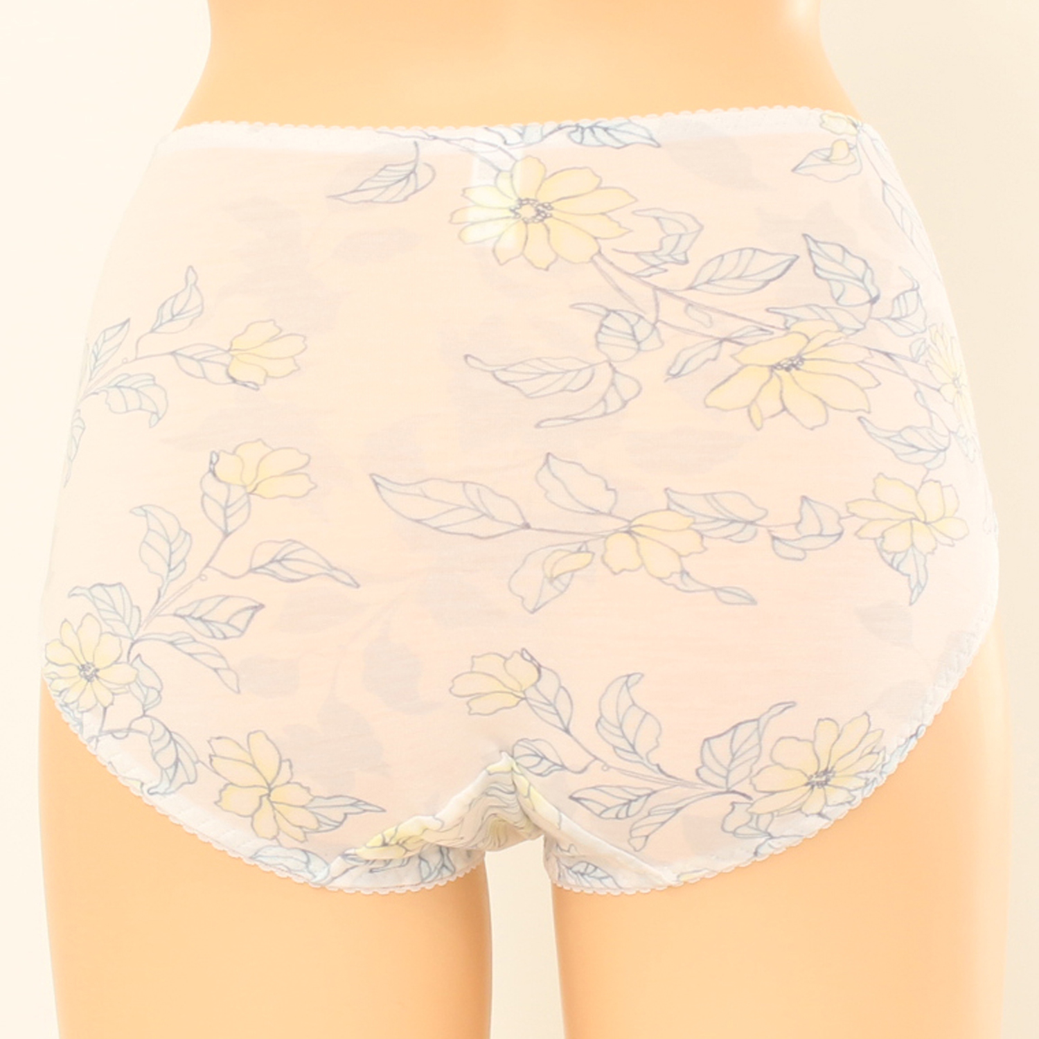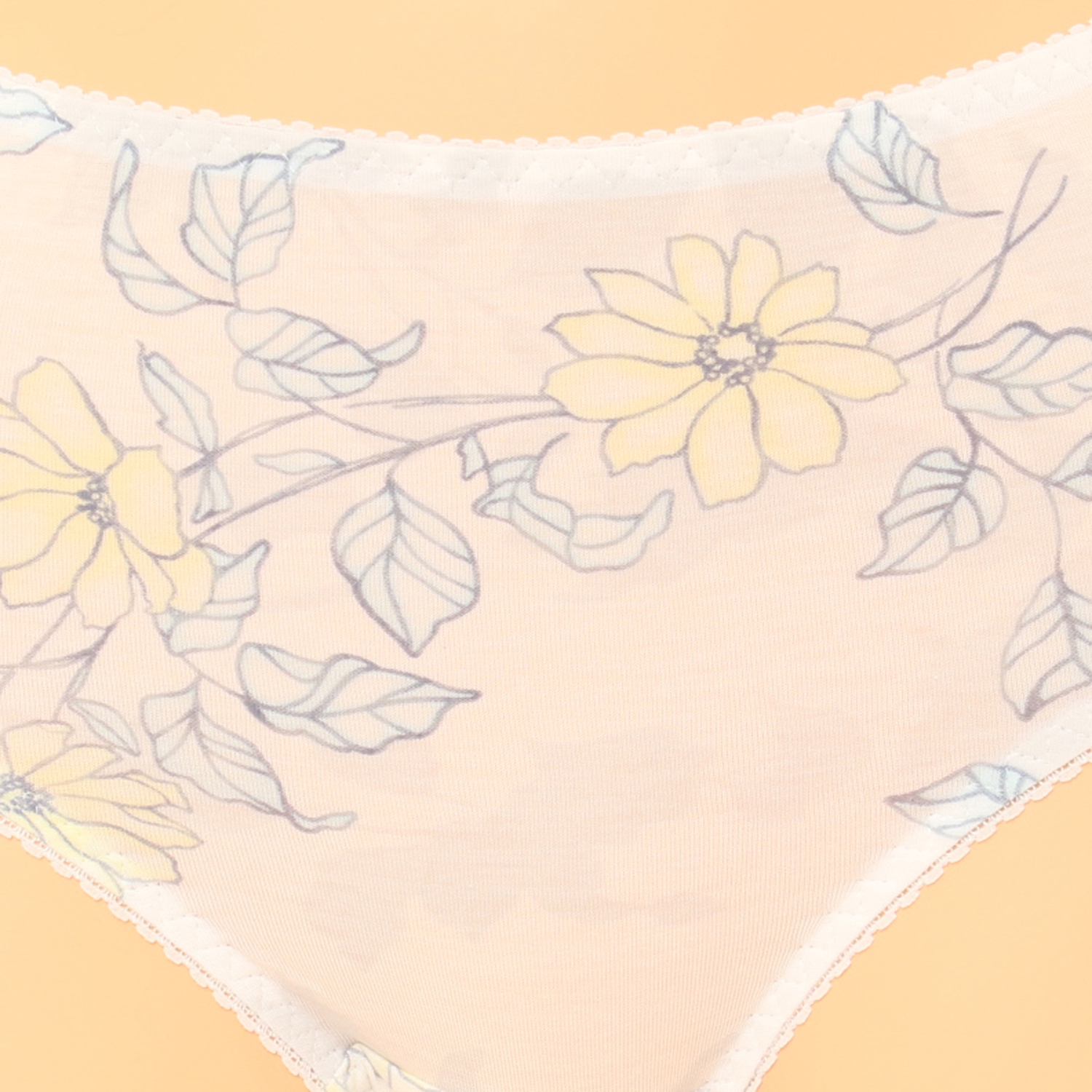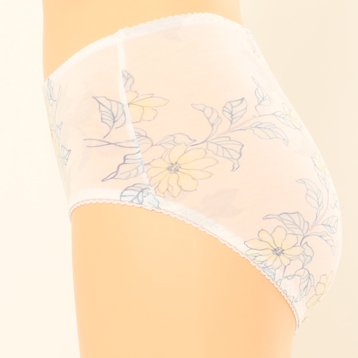 부드러운 터치감의 모달소재에 쿨링기능을 넣어 몸에 너무 밀착되지 않아 쾌적한 피팅감을 주는 나염 부인군 팬티제품입니다. 연한 파스텔계열의 꽃나염이 그라데이션 느낌으로 프린트되어 여성스러운 이미지 연출로 상의제품과 세트로 춘하시즌 선물용으로도 좋은 제품입니다.
