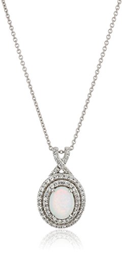 Sterling Silver Created Opal Oval with Created White Sapphire Double Halo Pendant Necklace & Earring Box Set,18"