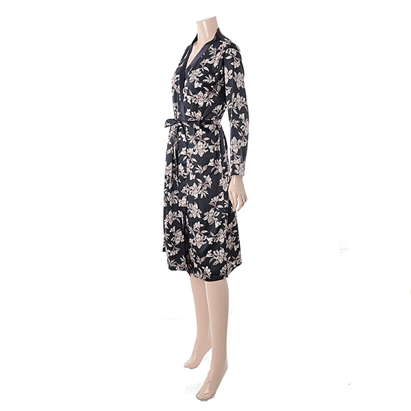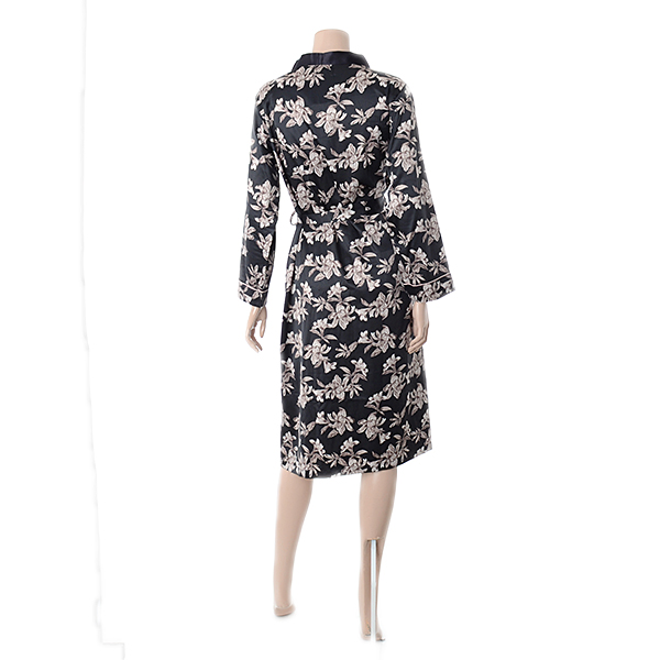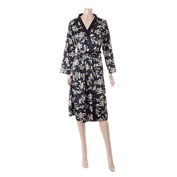 고급스럽고 기품있는 블랙꽃나염의 겉가운입니다. 엘레강스하면서도 고혹적인 분위기의 제품으로 실크필 소재로 제안하여 광택감과 부드러운 터치로 어필할 수 있는 제품입니다