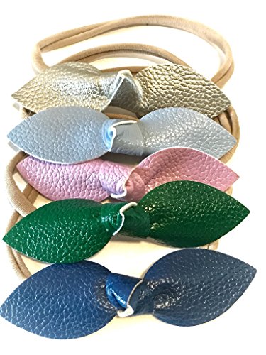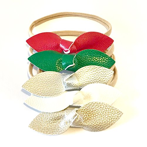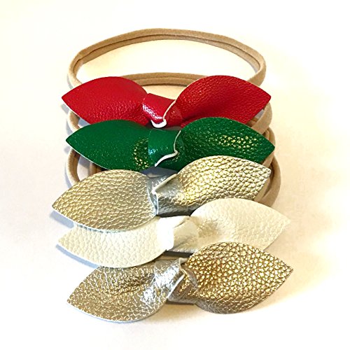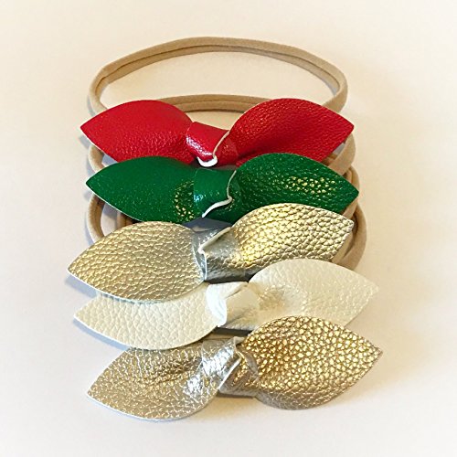 Faux Leather Baby Girl Bow, Holiday Neutral Color Sets, Nylon Soft and Stretchy Headband for ...