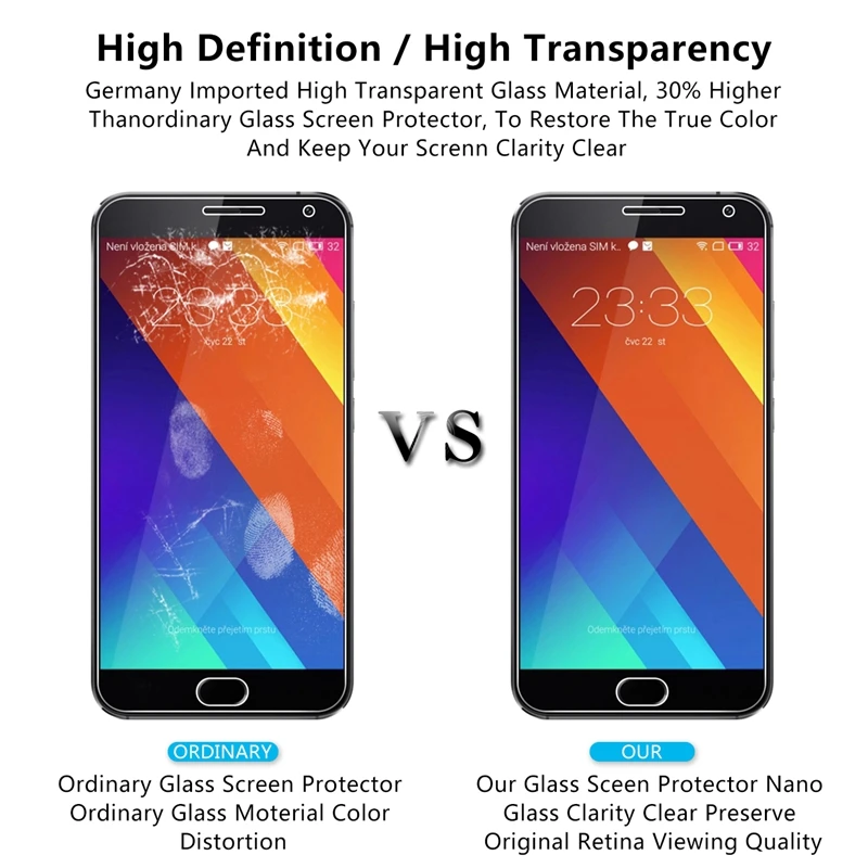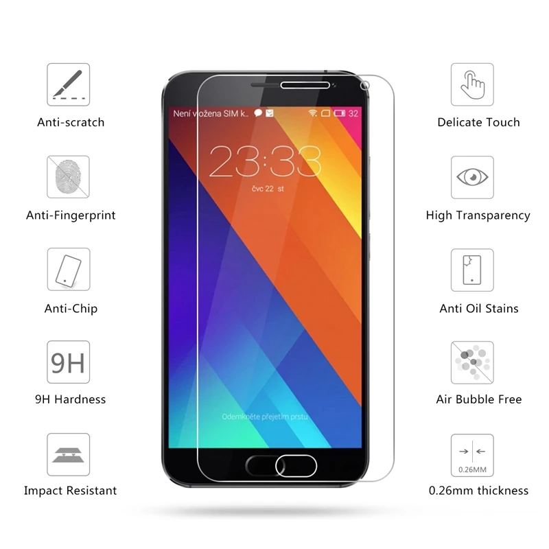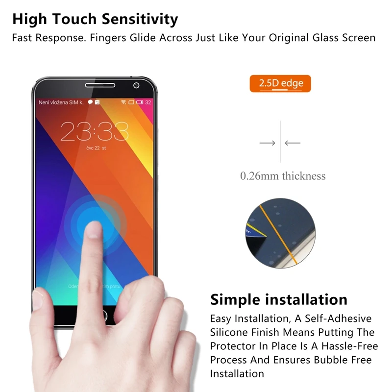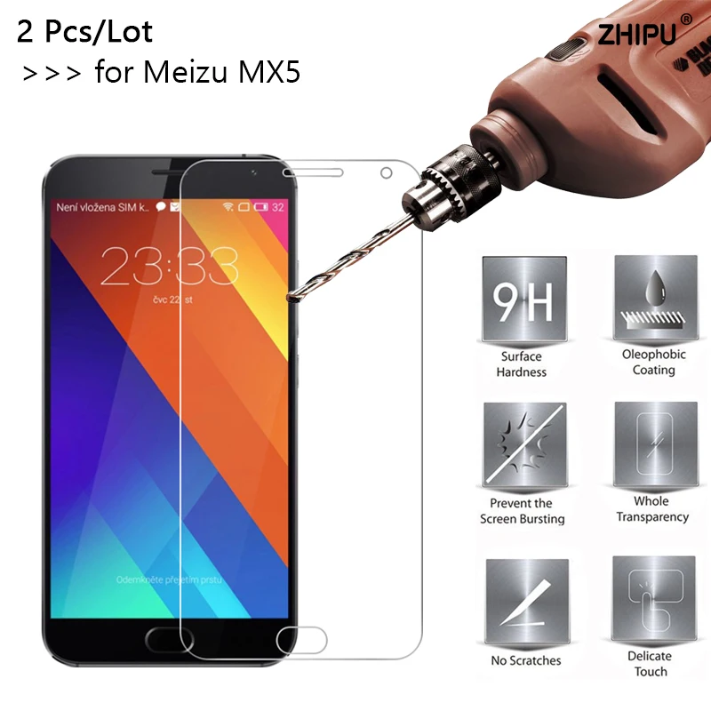 2 Pcs/Lot 2.5D 0.26mm 9H Premium Tempered Glass Screen Protector For Meizu MX5 Toughened protective film
