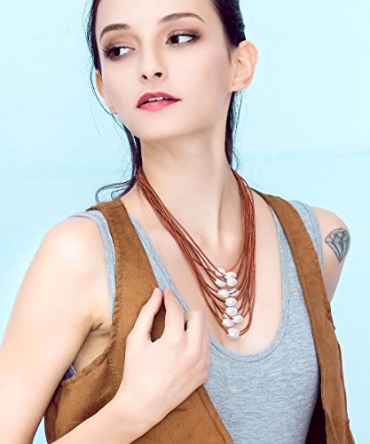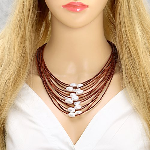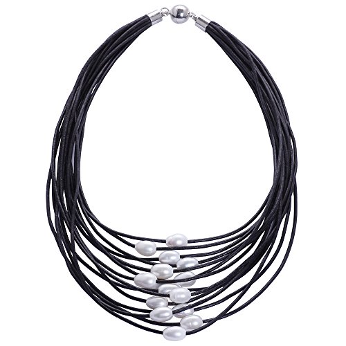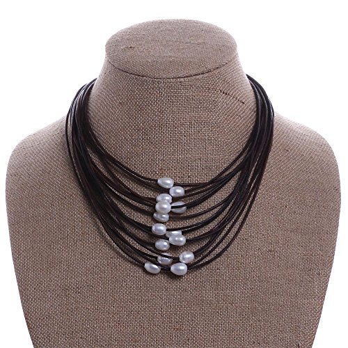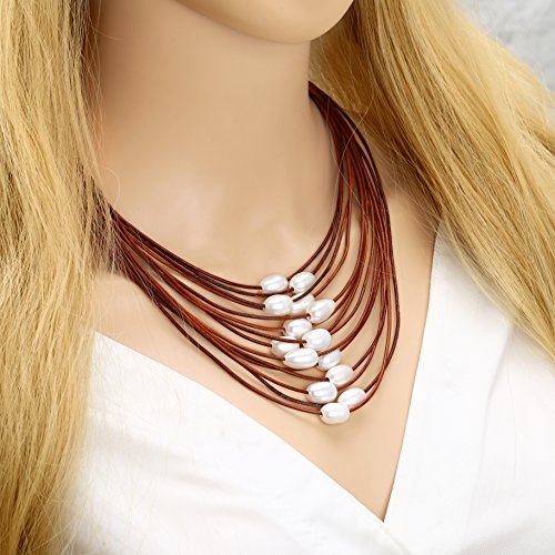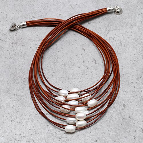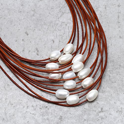 This Necklace is handmade with 2.0 mm genuine leather cord, the White pearls are Rice shaped, good luster pearls
