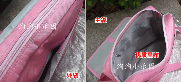Product Overview: 1 main pocket, an outer bag, a clamshell zipper pocket, two pockets, main pocket has a zipper pocket. Pattern using advanced thermal transfer technology, lasting not fade; alloy zipper, high-quality cloth.