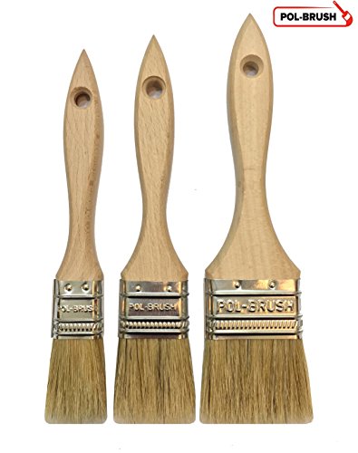3 Pack - Professional Paint Brushes - Natural Bristle\Wood Handle; For Professional & Amateur Paint Job, Oil Stain, Wax, Varnish, Glue and etc. …