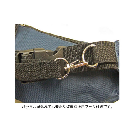 バックルが外れても安心な盗難防止用フック付きなので海外旅行のおともに