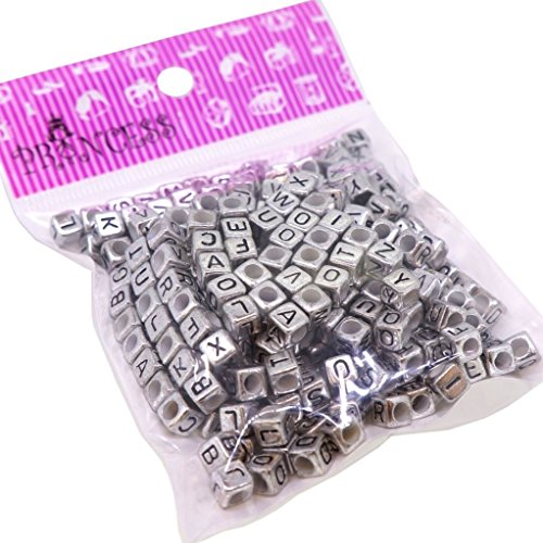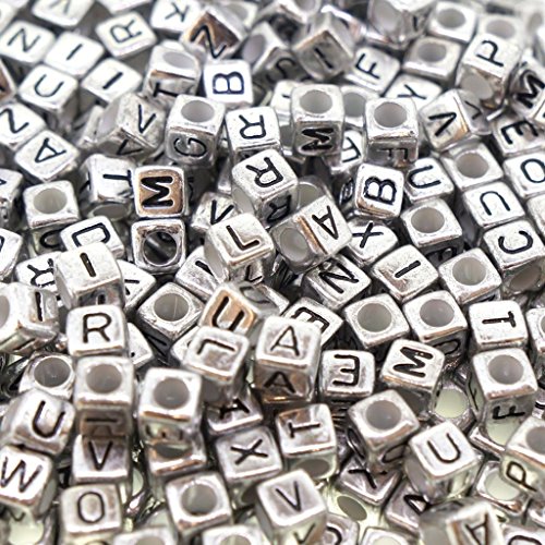 Randonly Mixed Acrylic Alphabet Beads, 6mm Cube, 3mm Hole, Silver with Black Letter, 50g apprx. 300pcs