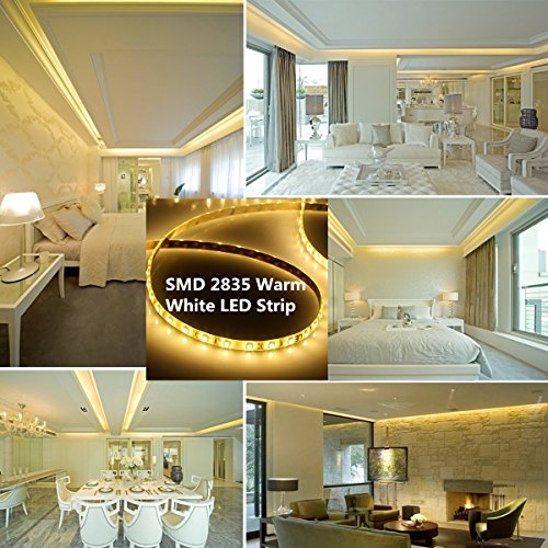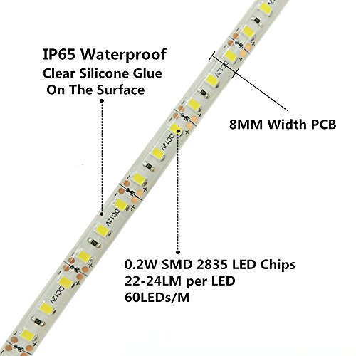 - 12V DC (adapter not included) Super bright Waterproof Warm White 2835 SMD LED strip