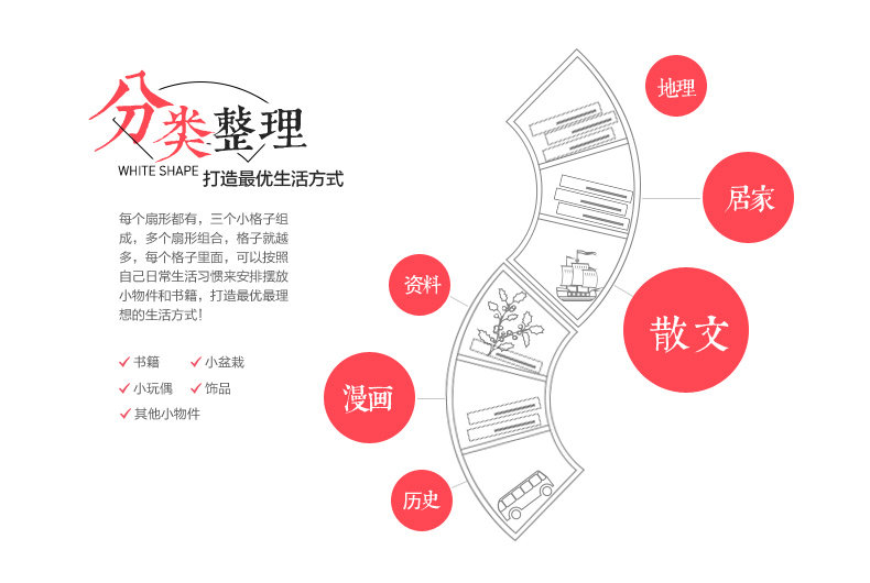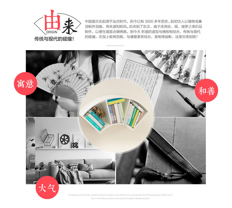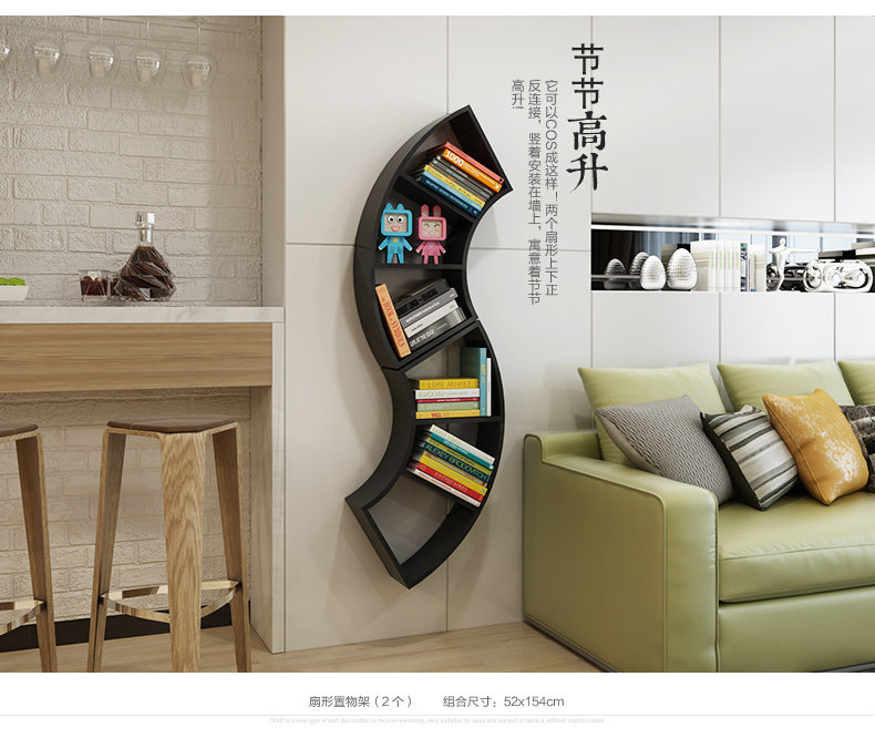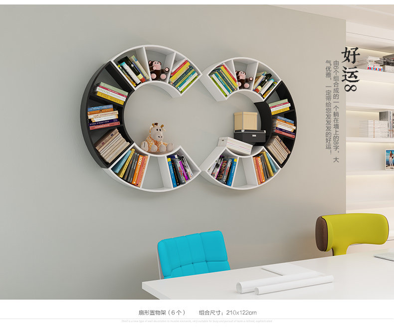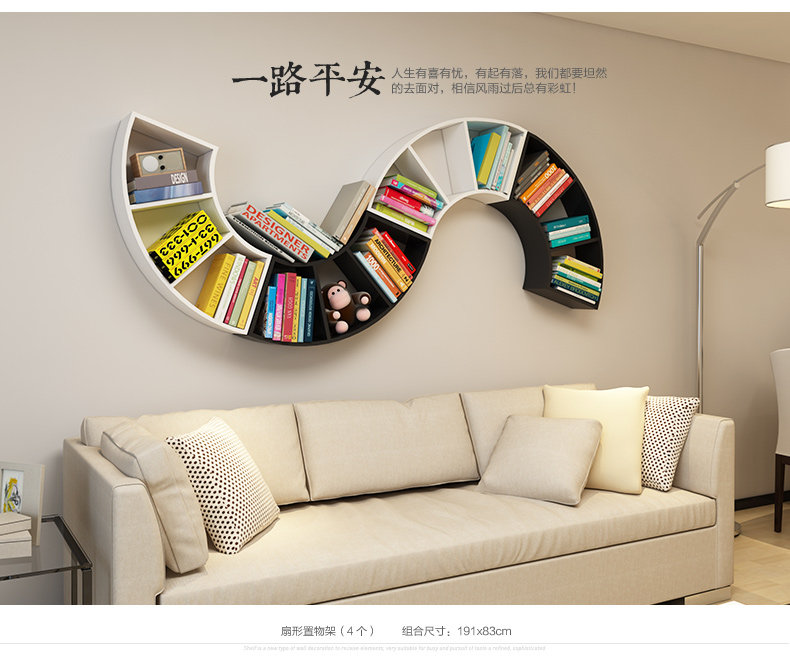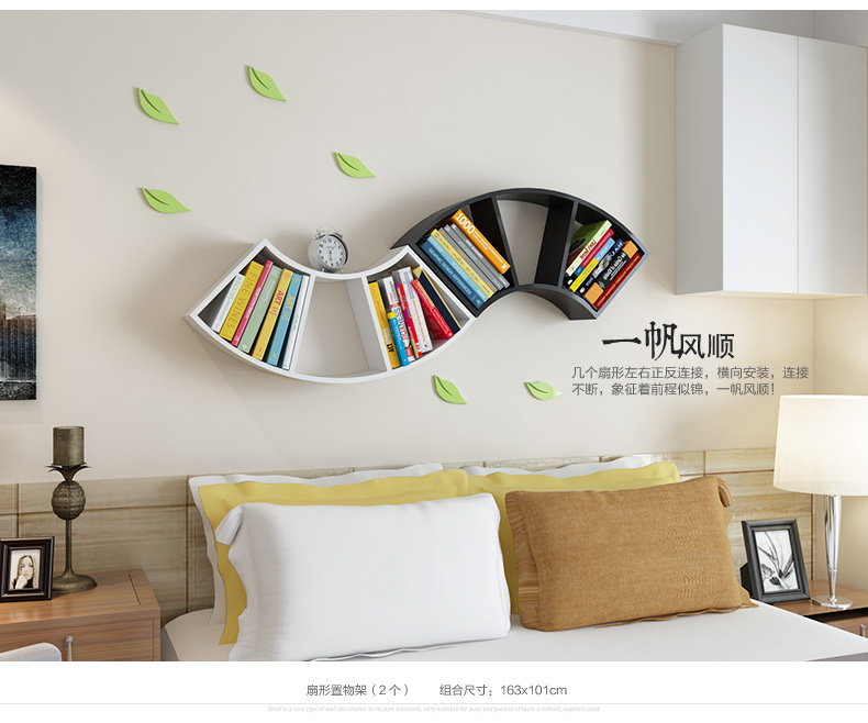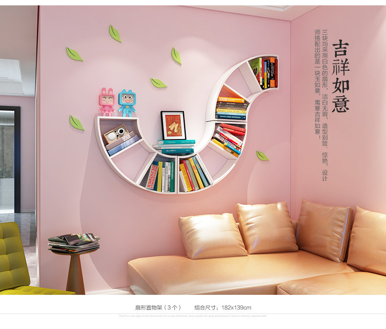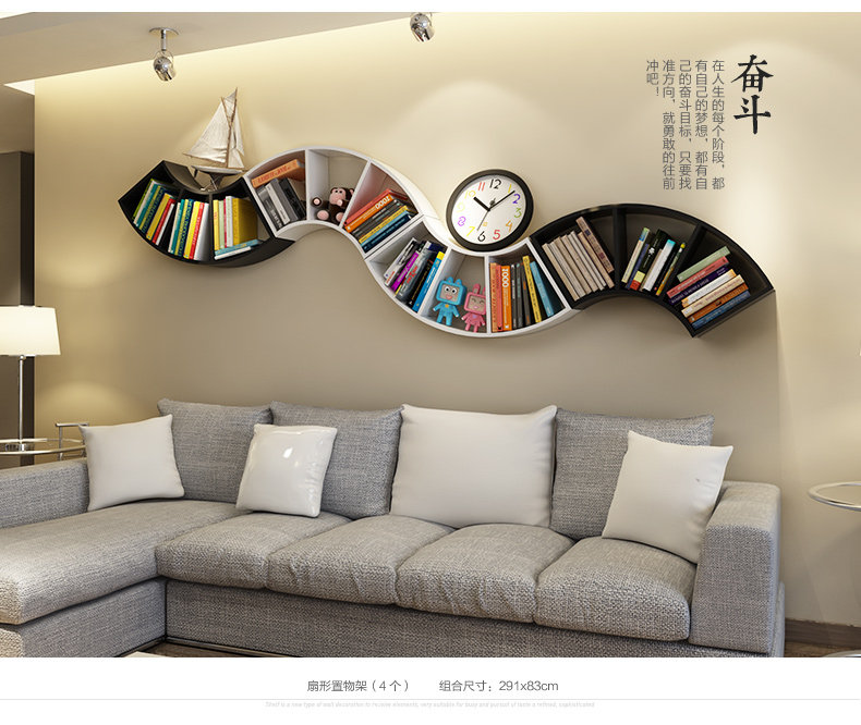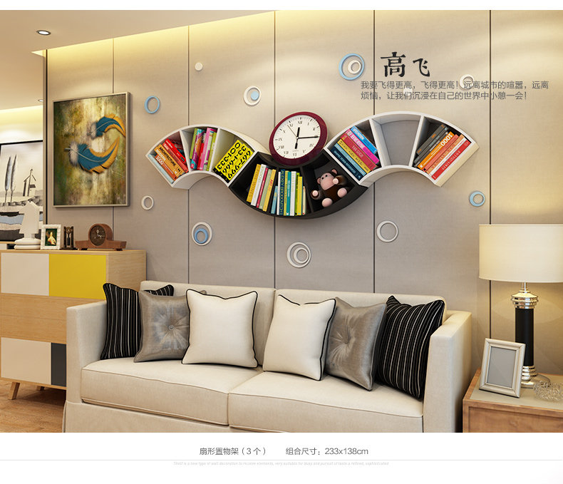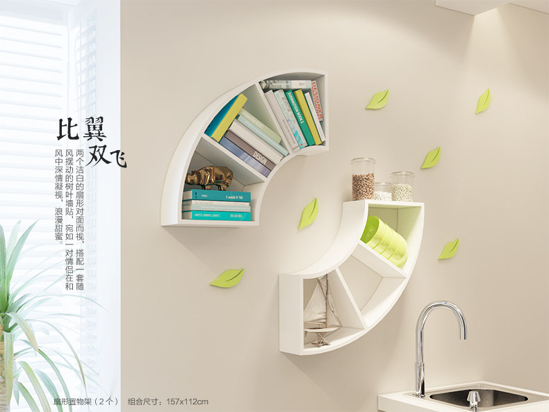客厅创意扇形墙上置物架卧室墙壁书架格子收纳架隔板书房壁挂搁板