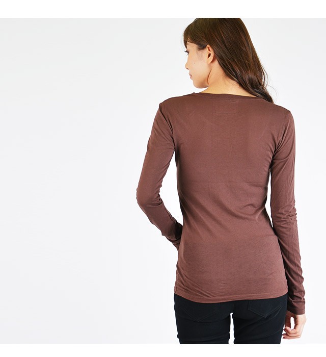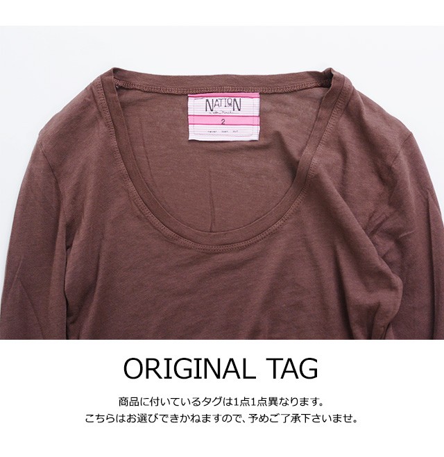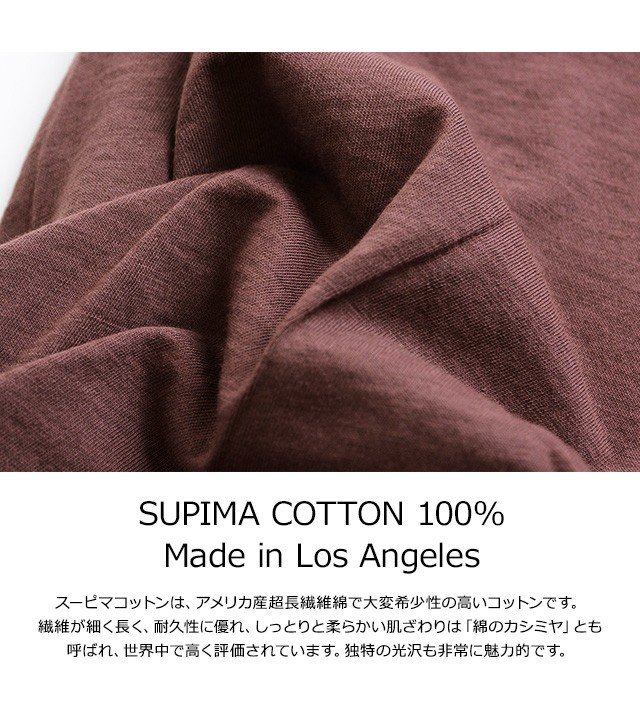 | 商品詳細 | NATION(ネイション) MADE IN USA。 アメリカでの生産にこだわり続ける、今の時代の気分を取り入れたロサンゼルスのブランドになります。 ネイションはロサンゼルスに住む、自然体でありながらも非常に洗練された印象を残す女性をイメージソースとして、着心地がよくムードのあるカットソーをメインにリリースしています。 こちらの商品はUネックのデコルテが美しい、体にフィットするタイプのカットソーになります。 全体的にヴィンテージ加工がされているため、初めて着用していただく時からうまれるこなれ感もポイント。 少し長めのお袖が女性らしい印象を与えます。 お体のラインを美しく見せるカットソーなので、夏は1枚で着ていただくのがおすすめです。 もたつかないカッティングなので、少し肌寒い日には羽織りなどの下のインナーとして。 オールマイティにお使いいただける、定番のカットソーです。 素材はSUPIMA COTTON(スーピマコットン)。 SUPIMA COTTONとは、柔らかな肌触りと発色に優れたアメリカ産超長繊維綿で、全綿花生産量1パーセント未満しか採れない大変希少性の高いコットンです。 天候の影響を受けやすく栽培に多くの労力を要するSUPIMA COTTONは、アメリカ南西部の限られた地域でしか栽培されず、世界で毎年生産される綿花生産量のごくわずかしか採れない大変貴重な素材です。 スーピマという言葉は、ピマ族という先住民の部族名のPimaと「上質の」という意味のSuperiorから由来しています。 もともとアメリカ大陸では、南米ペルーでピマ種の綿花が栽培されていました。 その綿花を中心に品種改良されたのがスーピマ綿で、この名称は、アメリカスーピマ協会の登録商標になっています。 スーピマ綿は、繊維長35mm以上の超長繊維綿です。 繊維が細く長く、しかも長さが均一で、強く、耐久性に優れており、しっとりと柔らかい肌ざわりは「綿のカシミヤ」とも呼ばれ、世界中で高く評価されています。 製品になったときの独特の光沢も非常に魅力的です。 【関連ワード】Vネック 定番 重ね着 レディース 春物 夏 カットソー 肌着 下着 カジュアル フェミニン 可愛い かわいい セクシー シンプル ルームウェア【メール便送料無料】定番 レディース インナー 綿100% セクシー free コットン100% 美シルエット S/M レディース トップス インナー 肌着 下着 シンプル 重ね着 綿100% コットン 春物 春夏 夏物 夏服 レディース トップス インナー ノースリーブ 肌着 下着 重ね着 無地 vネック インポート 長袖 Tシャツ インポートTシャツ モダン おしゃれ シンプル アースカラー ベーシックカラー ワンピース 生地 コーデ コーディネイト アレンジ 糸 wear おすすめブランド おすすめ 着こなし 着方 季節 首回り 組み合わせ コーデ コーディネイト 鎖骨 種類 素材 チュニック 長さ 通販 フレア ファッション ゆったり ゆるめ レイヤード CHOCO ブラウン 茶色 MADE IN USA アメリカ製 アメリカ産 america 無地tシャツ 洋服 無地t 衣料 | ||