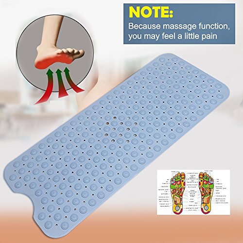 HEBE Extra Long Bathtub Mats Anti-Slip Bath Tub Mat Anti-Bacterial Shower Mat Simple Non Slip Bath Mats Machine Washable 15.5 W x 39 L Inches(Blue)