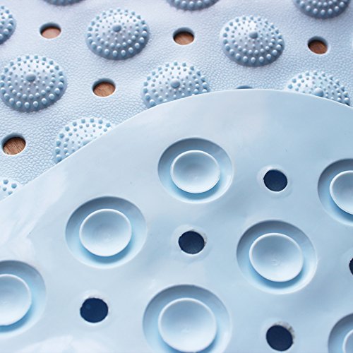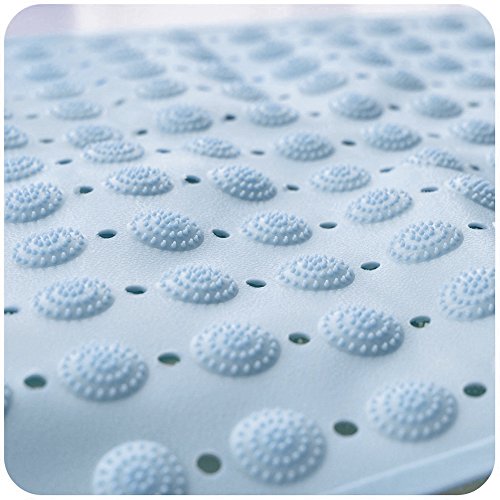 - Sturdy grip covered - With suction cups that once pressed into place adhere firmly to the floor of a tub or shower stall and will not shift or slide when you step on or off; the upper side of the mat is textured, giving your feet extra traction power and comfort that soothes and gently massages tired feet. NOTE: Because massage function, you may feel a little pain