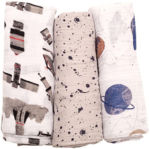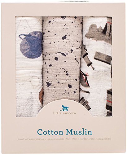 Little Unicorn Cotton Muslin Swaddle Blankets (set Of 3) - Ground Control, Blue, Brown, Black