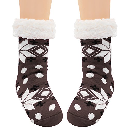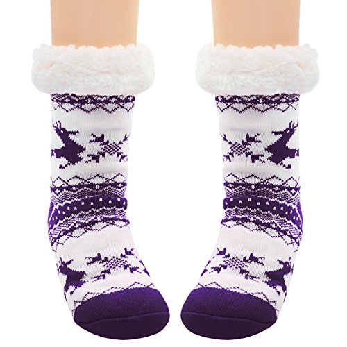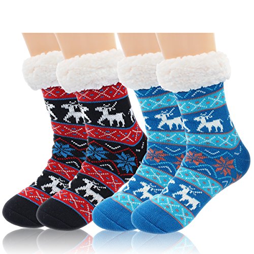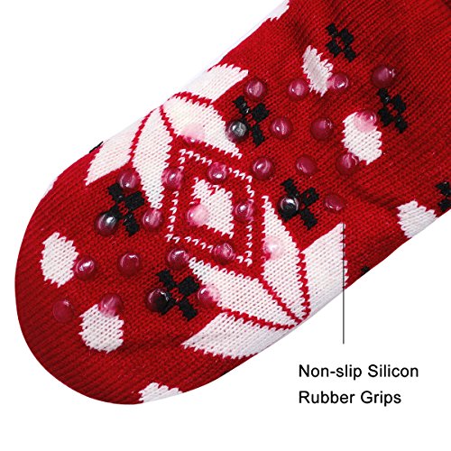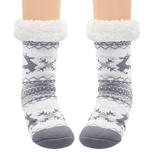 -. Feature : Fleece Lined slipper socks women gripper socks with non slip sole, can be worn with sandals, shoes, boots, or as non slip socks slippers or just around the house. / Non-Skid Socks: Silicon rubber grips on soles of socks prevent slips and falls on smooth floors. Not Easily Deform and No Scuff to any Floor. / Machine washable at 30 degrees. For best results, hand wash and line dry. / The Christmas socks with white stuff fleece for festival and winter cute decoration,Would be a special great gift for friends / Package: 2 pairs.One size fits most (Women's Shoe Sizes 6-10).