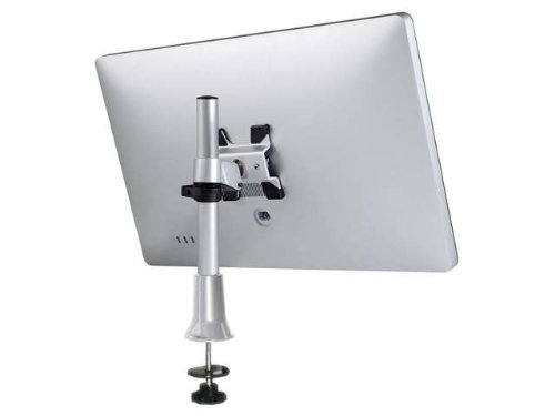 -. Feature : Dynamic Configurations. Reinvent your Apple monitor display screen and the way that you use it. This mount is capable of rotating, tilting, and swiveling for ergonomic environments. The control over your monitor will open up new applications and potential versatility ideal for homes, businesses, offices, schools, dorms, work stations, lobbies etc. / Ergonomic. Use the rotating and tilting features to create healthier alternatives to operating your computer monitor and screen. The best possible configuration for your health is possible with this dynamic mount. Utilize it to reduce back, neck, and even eye strain caused by static immobile screens / Full motion. Move your monitor around the pole or around the arm for a comfortable way to create optimal image quality with your monitor. Rotate or swivel 360 degrees or tilt your monitor over a span of 135 degrees. You can even alter you screen from landscape to portrait for reading long articles or graphs. All of this can be done without ever unscrewing your monitor / Compatibility. This monitor mount was specifically designed for apple products however the VESA 75x75 and 100x100 configurations are nearly universal. Many monitors are capable of mounting to this desk stand as well. The pre-determined Apple models are the iMac and the Thunderbolt, though others may fit as well. Screen sizes up to 27 inches / Sturdy Construction. The grommet clamp is versatile and easy to assemble. It can fit any desk between .5 and 5 inches. The load capacity is 44 lbs which supports most compatible monitors on the market. The solid die cast aluminum alloy is sturdy and modern. It is paired with a silver color scheme to best fit the Apple product line