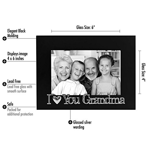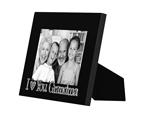 I Love You Grandma Picture Frame, Glass Front - Color: Black - Fits Photos 4x6 - Easel Back for Table Top Display