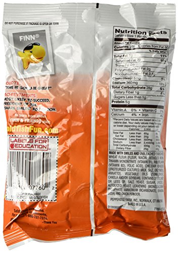 -. Feature : Cheddar Cracker Baked with Real Cheese / 0g Trans fat, low cholesterol / Crackers are Goldfish Shaped / Delightful, healthy snack for Kids / 12 convenient, 1.5 oz. snack packs (18oz)