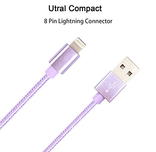 M.owstoni 3pcs 10ft Lightning Cable Nylon Braided Charging Cable Extra Long USB Cord for iphone 7,7 plus iphone 6s,6s plus,6plus,6,5s 5c 5,iPad Mini, Air,iPad5,iPod 7on iOS9.(Purple)