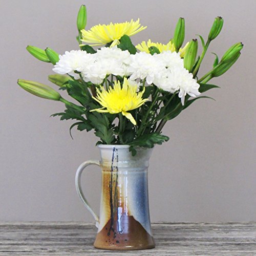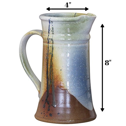 Feature : Made in Ireland using blended native Irish clay from 30-year-old proprietary recipes / Measures 8 inches in height with a diameter of 4 inches. This pitcher holds 34oz (1 litre) of water, iced tea or your favorite juice / Each pitcher is high temperature kiln dried which makes it hardwearing for everyday use and safe for dishwasher / The "Palette Glaze" finish on this pitcher is exclusive to Kiltrea Pottery Ireland. This very unique glaze is made up of different hues of green, blue and gold on an ivory base. The random patterns make each pitcher a one of a kind, very robust and hardwearing / This beautiful unique handmade pitcher makes a very special gift or anniversary item that also works great as a decorative flower vase. If you are looking for a quality product that will last for years, the Kiltrea Pitcher is just that
