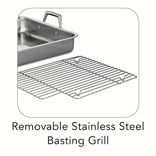 Great for everyday meals and elegant feasts, these handsome, hardworking pans make it simple to prepare everything from perfectly roasted meats, poultry and fresh vegetables to satisfying home-baked casseroles like lasagna and mac-and-cheese. The secrets to their terrific performance are restaurant-quality 18/10 stainless-steel construction, three convenient sizes and a sleek, efficient design. These roasting pans when purchased together nest perfectly, making them easy to store in your kitchen. The Tramontina gourmet prima roasting pans are part of the Tramontina gourmet collection, a series of premium products engineered and manufactured with the finest design, materials and workmanship, outperforming similar products within the market and delivering the best quality and value to the cooking professional and enthusiast alike. Includes stainless steel basting grill and heavy-duty, cast stainless steel riveted mirror-polished handles, for extra durability and a great look for your kitchen. Made in brazil, proudly assembled and packaged in USA and offered under a lifetime warranty.Feature