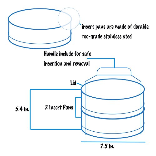 √ Steamer : The two-tier stackable insert pans are designed with lid to perfectly steam your food! The bottom pan cooks slightly faster than the top pan, therefore meats and items like potato ipuranol that require a longer cooking time are better placed in the bottom pan.