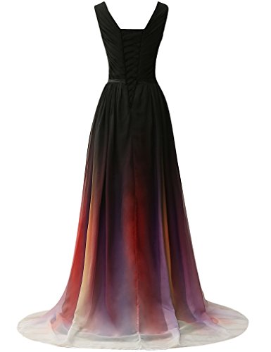 Browse large selection of dresses for your special occasion.This sophisticated fitted JAEDEN evening prom style showcases gradient colorful ombre chiffon frabic. The lovely crossover bodice is ruched and waistline with sash. Open Back is alluring while sweep train is graceful.The skirt moves graciously with you when you walk, dance gently sweeping the floor.