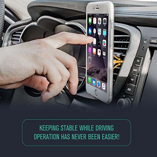 -. Feature : Magnetic and Cradle-less design, with Super strong magnetic hold / No tools required. Stick to air vent in 10 seconds or less. One-handed operation, and fully adjustable with 360° rotation. / Super strong magnetic hold (will not damage your device) / Pocket size - Weighs under an ounce and small enough to fit in your pocket. / This Air vent universal smartphone magnetic car mount holder is 10 times easier to use than any other magnetic car mount holder due to its simple and complementary design. It has a sturdy rubber base and a powerful magnetic head for holding smartphones.