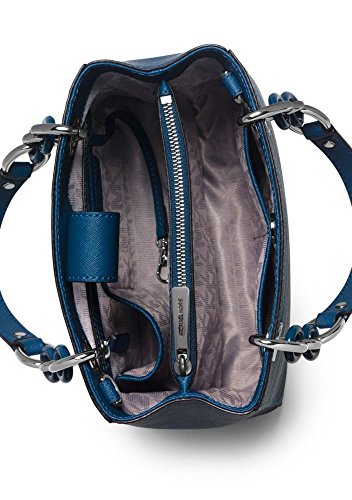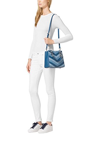 Add a pop of color to any outfit with MICHAEL Michael Kors' iconic Cynthia satchel, updated in colorful chevron patch leather and matching chain-links. Chevron patch saffiano leather; lining: polyester Double handles with 6-1/2" drop; adjustable strap with 18"-21" drop Bridge with snap closure Exterior features silver-tone hardware Interior features center zip compartment, 3 open pockets, 1 zip pocket, 1 cellphone pocket and key fob 9-1/2" W x 8" H x 4-1/2" D Silhouette is based off 5'9" model ImportedFeature