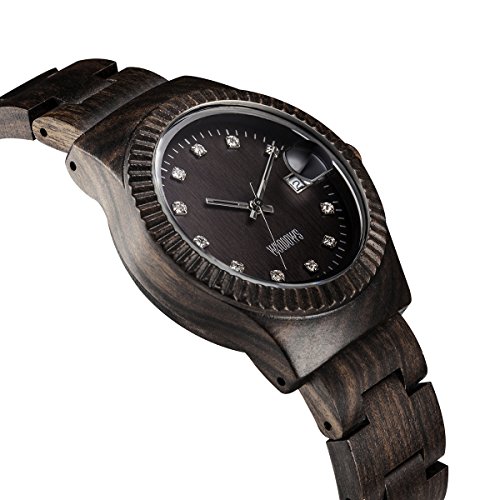 Mothers day gift Wooden Watches,100% Phoebe quartz Analog Round Dial Watch with Date Calendar for women