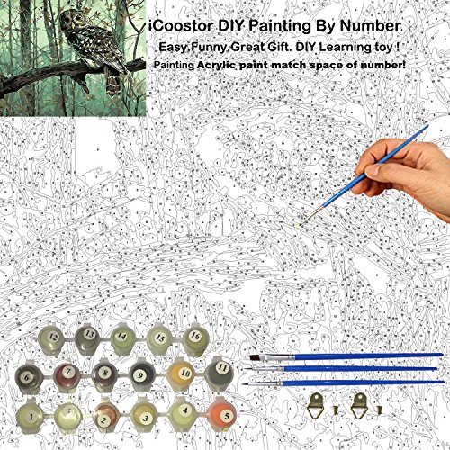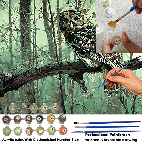 Paint By Numbers DIY Acrylic Painting Kit For Kids & Adults By iCoostor – 16” x 20” Vivid Owl Pattern With 3 Brushes & Bright Colors