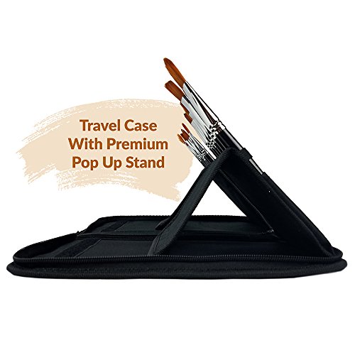Artist Professional Paint Brush Set With 15 Brushes & Carrying Case - Built-In Brush Stand – Hobby - Acrylic – Face Painting - Oil – Watercolor – Plein Air – Gouache