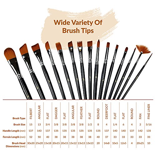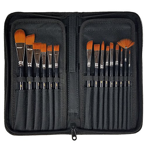 ARTIST’S COMPLETE 15 PIECE BRUSH SET – Whether an experienced artist or a student beginner there is no need to settle for the standard 12 or 14 piece set – Choose this all-inclusive 15 brush set which includes a Large Brush for those areas requiring a more full brush stroke not easily accomplished with a smaller width brush