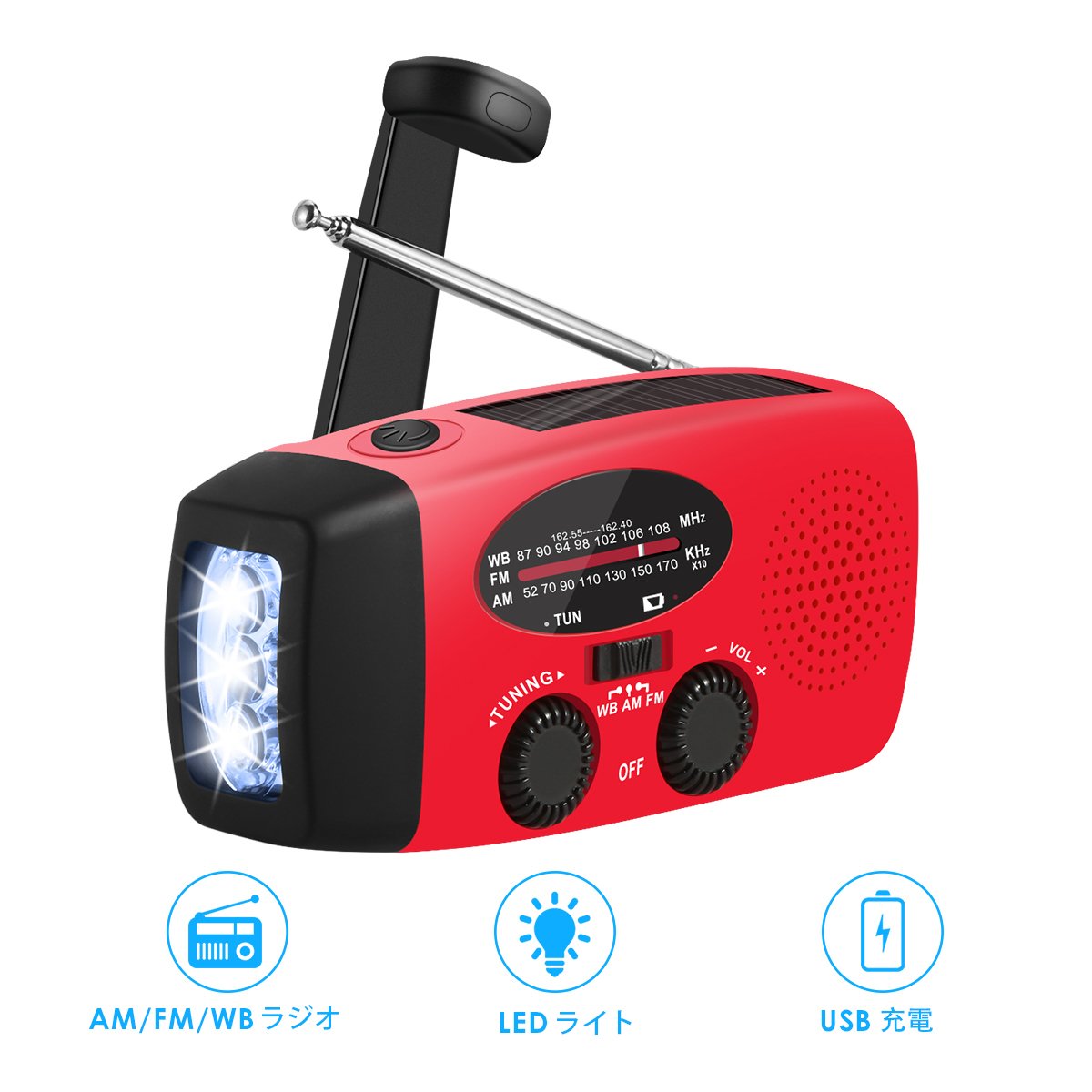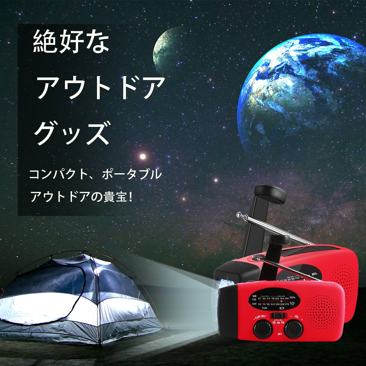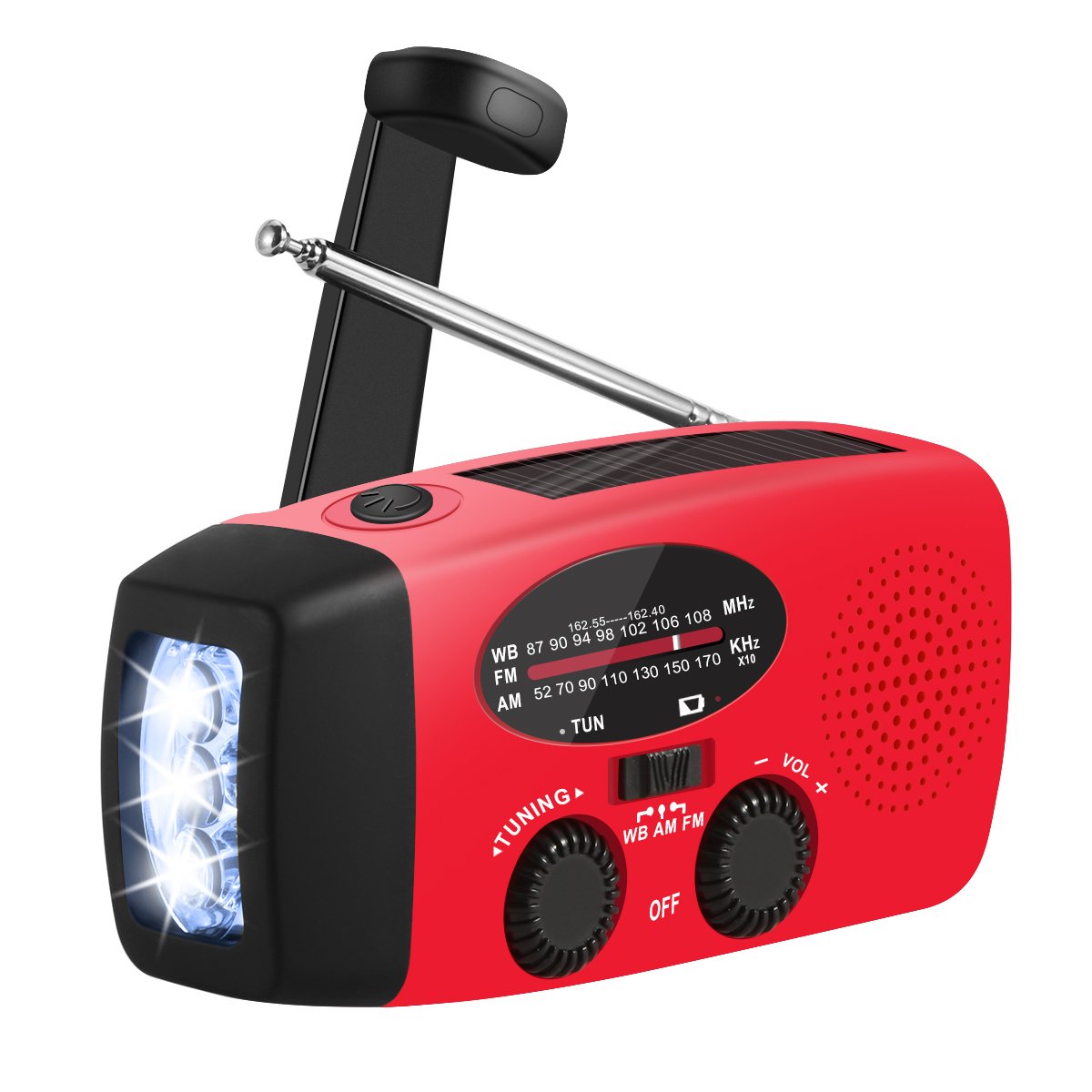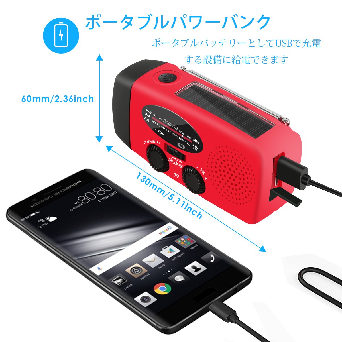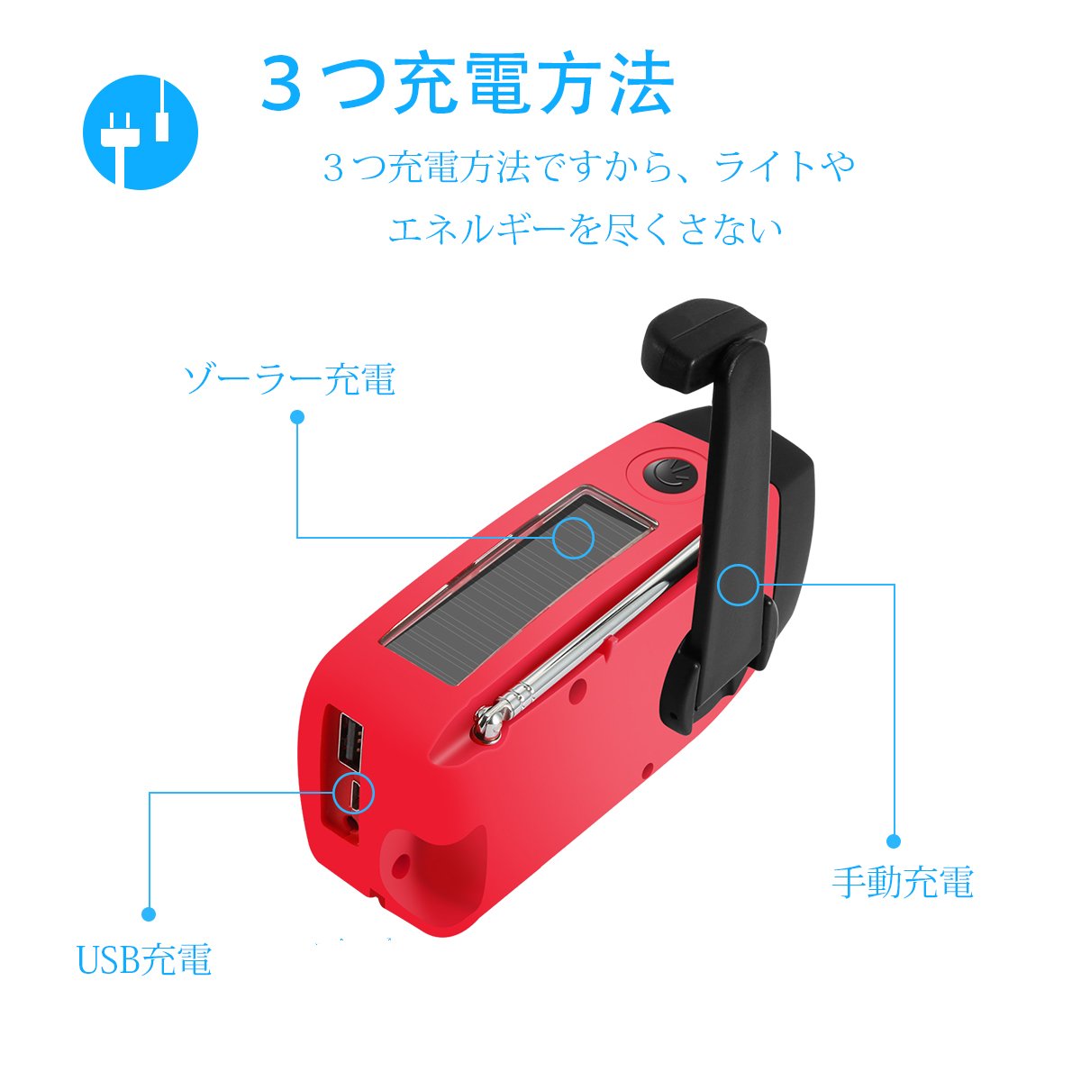 Various charging methods: Manual charging, solar charging, USB charging, charging to mobile phones in case of emergency